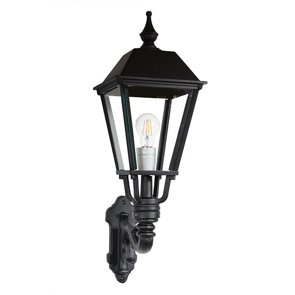 Unsere Fassadenbeleuchtung ist quadratisch mit einer hübschen Spitze auf der Laterne. Echtes Glas gibt ein schönes Lichtbild wieder. Die geschwungene, handgeformte Wandhalterung wird mit dem Laternenhaus zu einem edlen Schmuckstück an Ihrer Fassade, eine Fassadenlaterne, die in ihrem schlichten und unverfälschten klassischen Design die Blicke auf sich zieht. Die klassische Wandleuchte hat einen Porzellansockel mit E27-Fassung, es ist auch möglich, LED in unseren Leuchten zu verwenden.