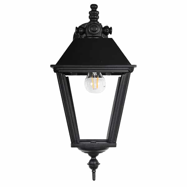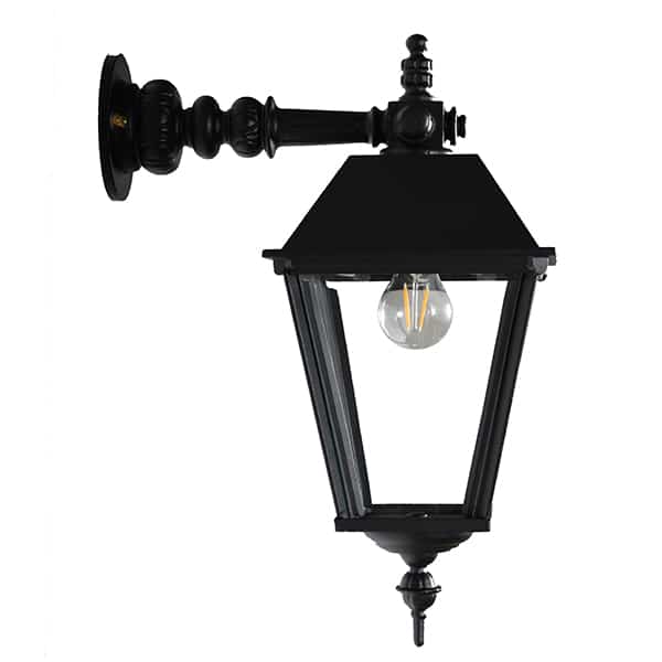 Unsere Hängelampe hat eine 4-eckige Laterne mit einer schönen Turmspitze. Echtes Glas gibt ein schönes Lichtbild wieder. Die stilvolle handgegossene Wandhalterung wird mit dem Laternenhaus zu einem edlen Schmuckstück an Ihrer Fassade, eine Fassadenbeleuchtung, die in ihrem schlichten und unverfälschten klassischen Design die Blicke auf sich zieht. Diese Außenbeleuchtung hat einen Porzellansockel mit E27-Fassung, es ist auch möglich, LED in unseren Leuchten zu verwenden.