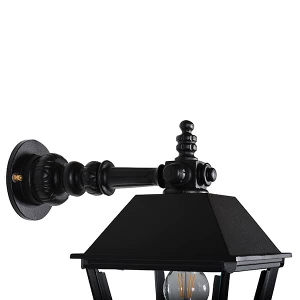 Der Arm und die Laterne sind aus massivem, handgegossenem Aluminium gefertigt, so dass diese Außenleuchte leicht an der Wand zu befestigen ist. Die Fassadenleuchte ist für den besten Schutz zweimal pulverbeschichtet, mit einer mattschwarzen, strukturierten Farbe, für ein altmodisches, authentisches Gefühl. Diese klassische Lampe ist beliebt, weil das Material nicht rostet und sie so wartungsfrei ist, eine Wandlaterne für Generationen. Diese klassische Außenwandleuchte ist an vielen Orten schön, z.B. über Türen, neben den Türen am Eingang oder an der Fassade des Hauses.