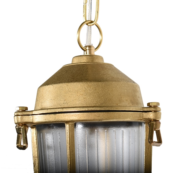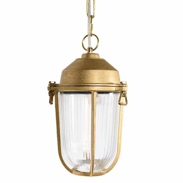 Schöne hängende Deckenlampe im maritimen Stil. Manacor ist aus Messing gefertigt und hat ein klares Glas. Es ist gut gemacht und ist eine unglaublich langlebig Deckenleuchte, wie es aus einem solchen soliden Material hergestellt ist. Die Kette ist 70cm lang und die Lampe selbst ist 22,5cm. Die Lampe hat eine dekorative Kette und eine Mutter, mit der Sie das Laternengitter, das das schöne Glas hält, anschrauben. Diese Deckenlampe ist schön in einem Außenraum, auf der Veranda oder vielleicht in der Außenküche. Die Deckenleuchte hat IP 64