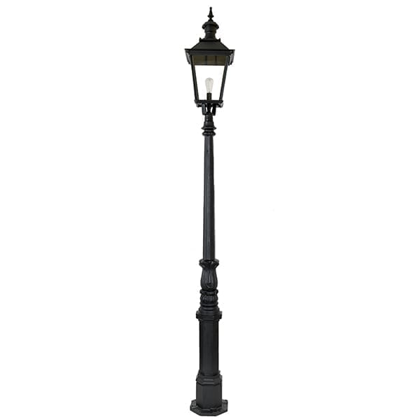 Pfostenlaterne aus Gusseisen aus unserer Kollektion. Eine sehr gut gemachte Außenbeleuchtung für kommende Generationen. Diese Art von klassischer Pfostenlaterne beleuchtet seit Jahrhunderten Straßen, Plätze, Parks, Gärten und Häuser. Der Stil ist elegant und ansprechend, man spürt und sieht, dass eine gusseiserne Pfostenlaterne eine robuste Leuchte ist, die ihren Platz für lange Zeit schmücken wird!