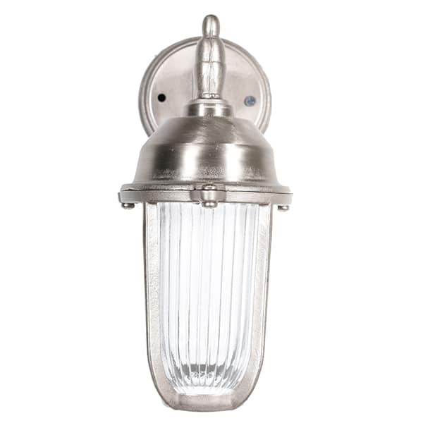 Wandleuchte robust aus Messingguss mit matt vernickelt wirklich stilvolle Lampe gemacht. Das Glas ist klar und gibt ein schönes Glühen in der Dämmerung. Messing Wandleuchte passt gut in Küstenumgebung, wo der Salzgehalt in der Luft höher ist. Diese Wandlampe passt zu vielen Stilen, das Design geht in die maritime Richtung. Eine Lampe, die Sie für viele Jahre zu kommen, wie es von einem so guten und langlebigen Material und Messing mit Nickel wird nur schöner im Laufe der Jahre gemacht haben! IP 64, CE-gekennzeichnet, E27-Fassung.