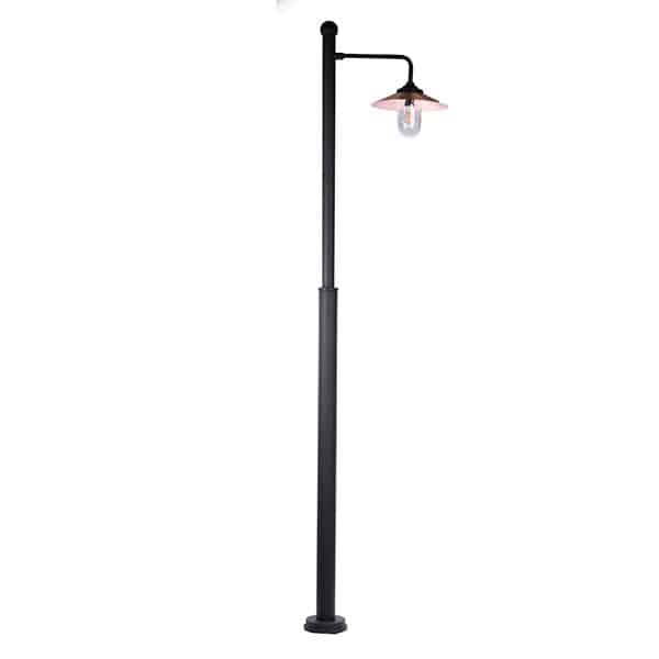 Kulturlampan ist der Designer dieses Modells: Wir haben einen sauberen Mast gemacht, der verzinkt und schwarz lackiert ist. Die Lampe ist aus Gusseisen und Emaille-Schirm gemacht. E27-Fassung, geeignet für normale LED-Lichtquelle. Der Durchmesser des Sockels ist 15cm und hat vier Befestigungslöcher mit 9cm CC. Das Rohr ist 8cm an der breitesten Stelle. Hat auch eine Abdeckung über der Basis, die 17cm im Durchmesser ist