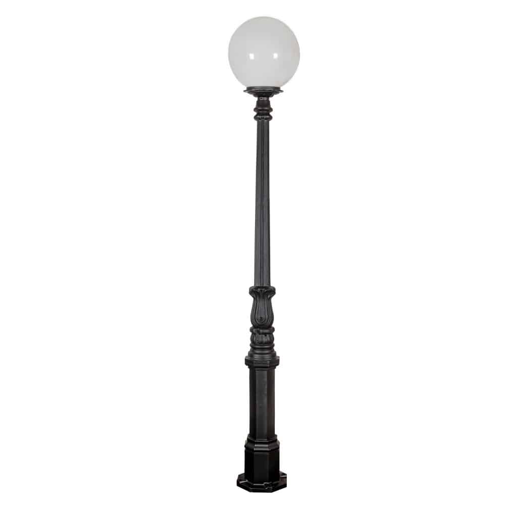 • Hochwertiger Gusseisenpfosten mit Tauchlackierung und 400er-Glaskugel.