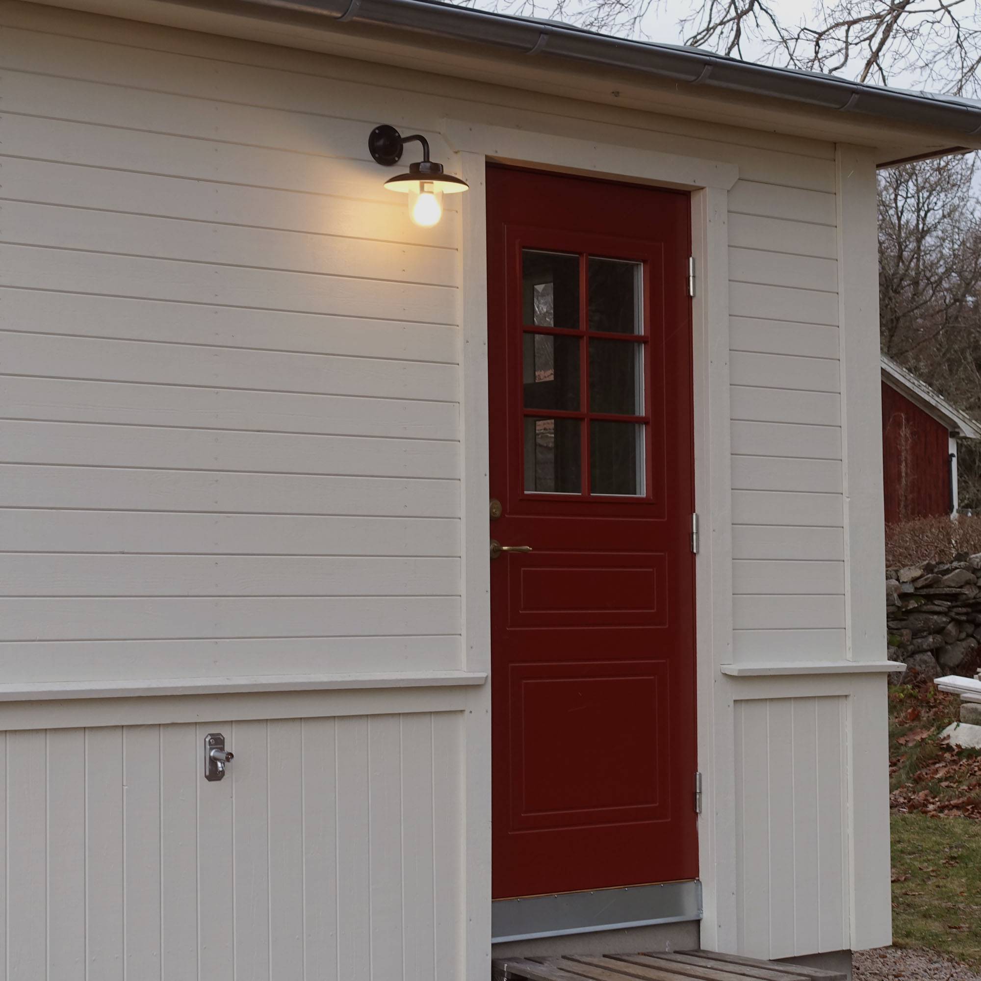 Die Standleuchte mini von Kulturlampan passt sowohl an alte als auch an neuere Häuser. Hier ist die Lampe neben der Tür montiert, sie ist sehr einladend und gibt ein gutes Licht, wenn Sie nach Hause kommen.