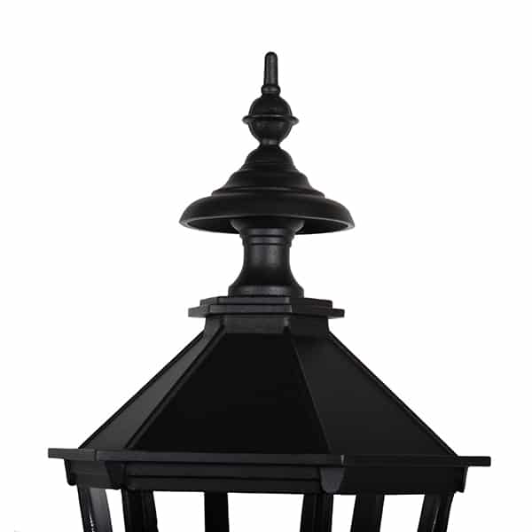 Wir haben klassische Auffahrtsbeleuchtungen sowohl aus dem leichteren Gussmaterial Aluminium als auch aus dem robusten, schwereren Material Gusseisen. Diese Beleuchtung ist aus massivem Aluminium handgegossen und lässt sich leicht montieren. Die dauerhafte Pulverbeschichtung in einer modernen, matten schwarzen Farbe bedeutet, dass sie sehr gut geschützt ist und die Tatsache, dass sie wartungsfrei ist, wird von vielen geschätzt, außerdem rostet diese Torleuchte nicht. Das Glas ist echt und leuchtet schön im Dunkeln an der Einfahrt oder am Torpfosten. Ein echter Klassiker, der den Test der Zeit besteht! Die Lampe hat die IP-Nummer 23 und ist CE-gekennzeichnet. Der Lampensockel ist aus Porzellan und hat eine E27-Fassung.