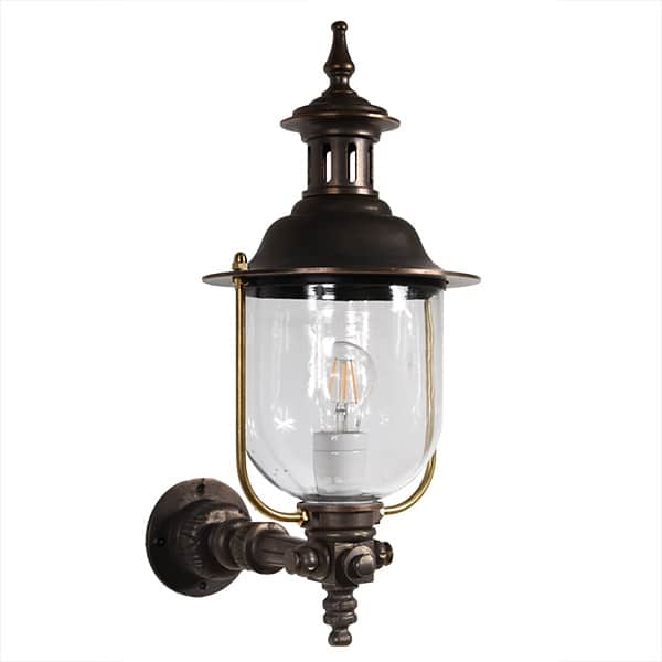 Die Außenbeleuchtung ist aus massivem, handgegossenem Messing gefertigt, wodurch sich die Leuchte leicht an der Wand befestigen lässt. Die Wandlaterne ist sehr geeignet für Küstenumgebungen mit hohem Salzgehalt in der Luft. Die Wandleuchte ist beliebt, weil das Material nicht rostet und sie so wartungsfrei ist, eine Leuchte für Generationen!
