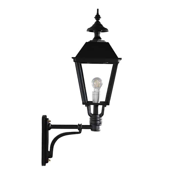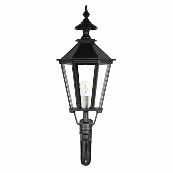 Unsere Wandleuchte hat eine 6-eckige Laterne mit einer schönen Turmspitze. Echtes Glas gibt ein schönes Lichtbild wieder. Die geschwungene handgegossene Wandhalterung wird mit dem Laternenhaus zu einem edlen Schmuckstück an Ihrer Fassade, eine Fassadenbeleuchtung, die in ihrem schlichten und unverfälschten klassischen Design die Blicke auf sich zieht. Die klassische Wandleuchte hat einen Porzellansockel mit E27-Fassung, es ist auch möglich, LED in unseren Leuchten zu verwenden.