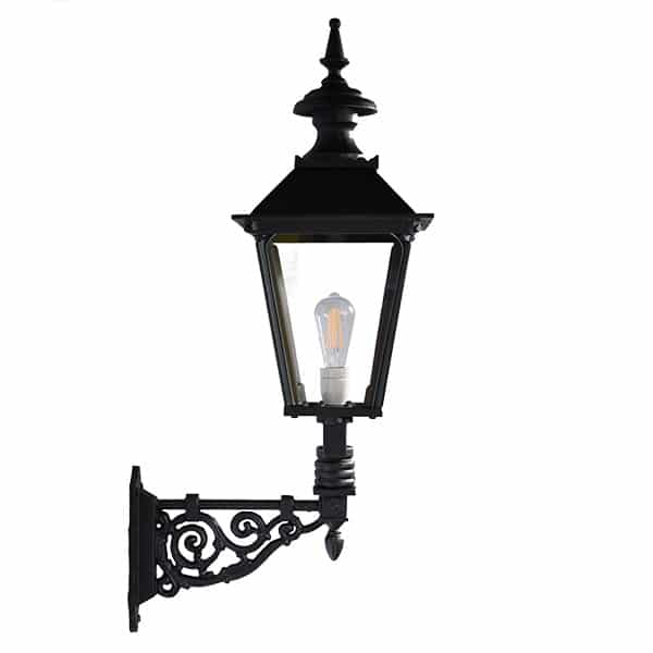 Stattliche klassische Laternen aus Gusseisen mit verziertem Wandausleger und quadratischem Laternengehäuse